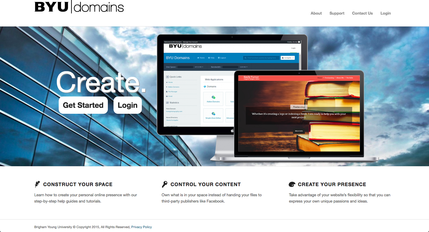 Interested in having a look for yourself before committing? We’ve got a demo Domain of One’s Own school running at stateu.org to give you a better sense of what’s possible. Create a free, 30-day test account as an end user to better understand the signup workflow, institutional branding options, and embedded cPanel layout. Keep in mind that this is a test environment only, so some custom features may be missing. Reach out to us for any questions!
